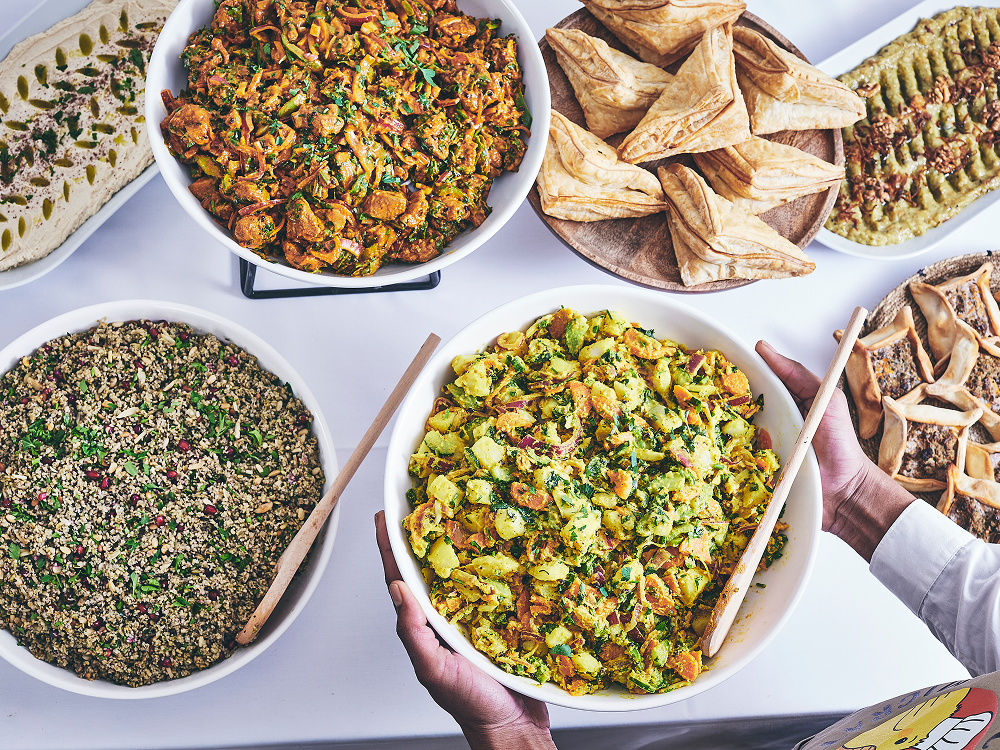 - Nos plats à partager : nouilles “chowmein” tibétaines, saumon au curcuma et riz aux herbes à l’iranienne, poulet “yassa” comme au Sénégal…